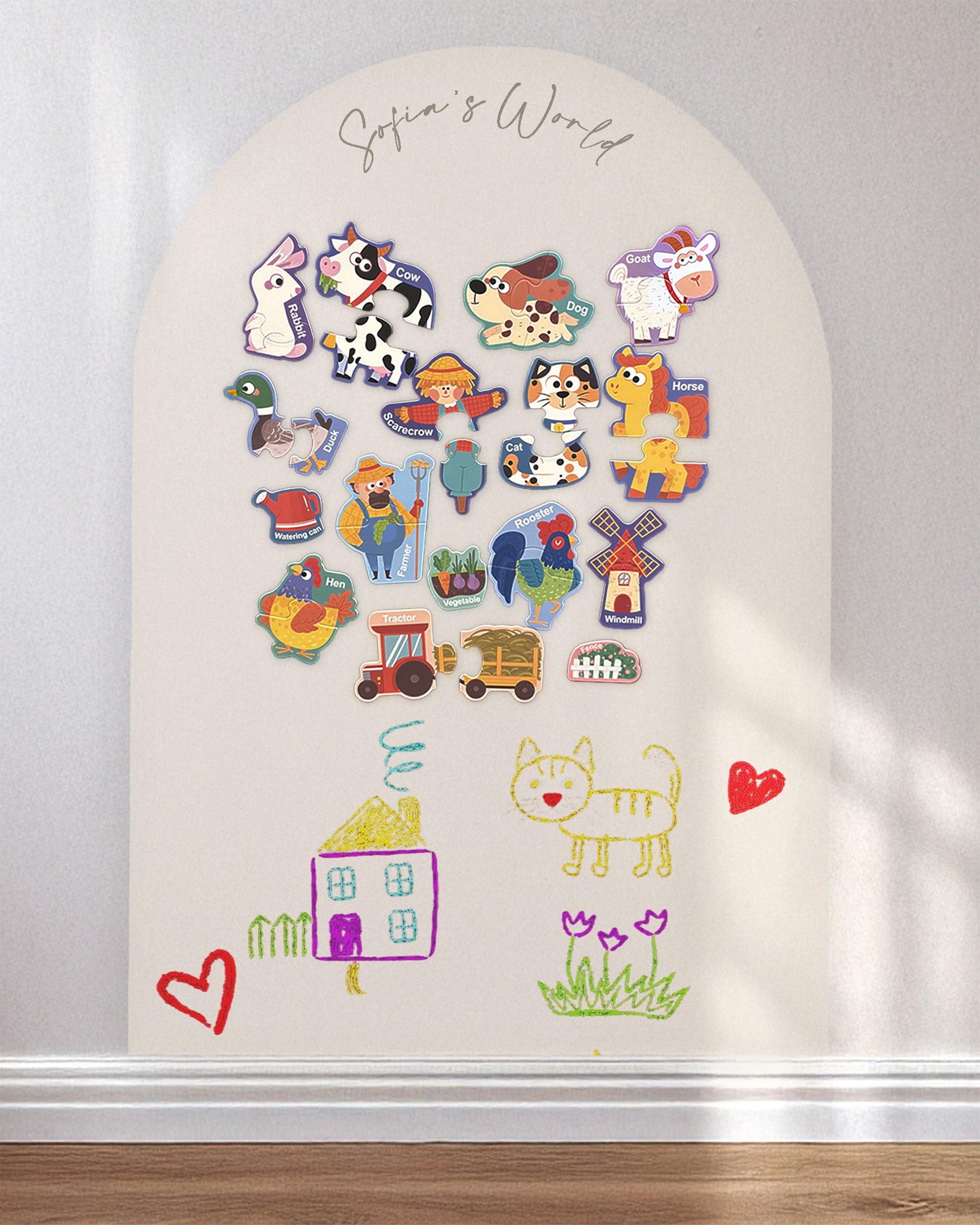 Our Magnetic Play & Learn Walls spark imagination through Montessori-inspired play, not screens. Personalized, removable, and safe for every wall.