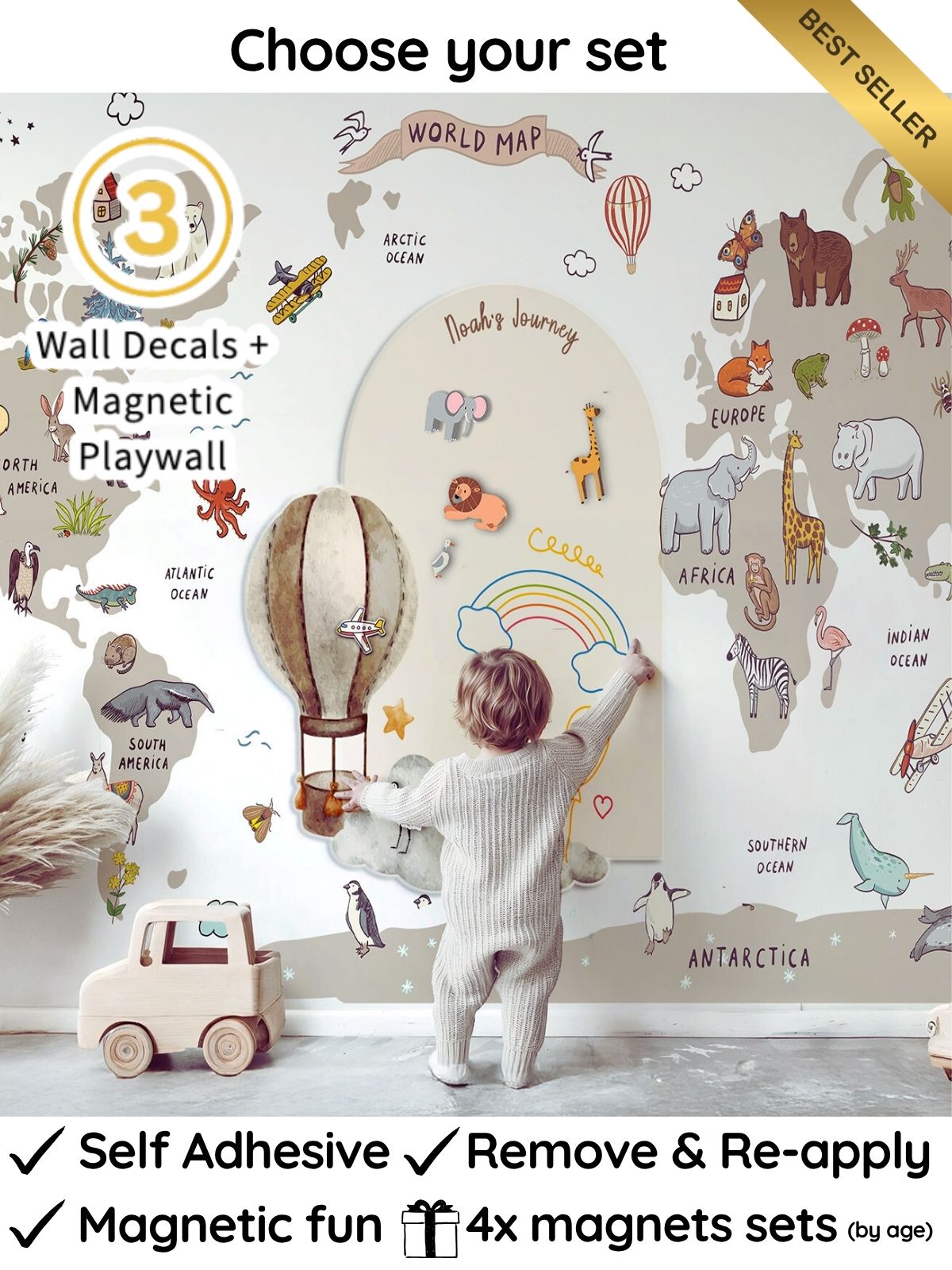 ✔️ Includes Wall decals, Magnetic play wall, and Age-Based Magnet Sets
