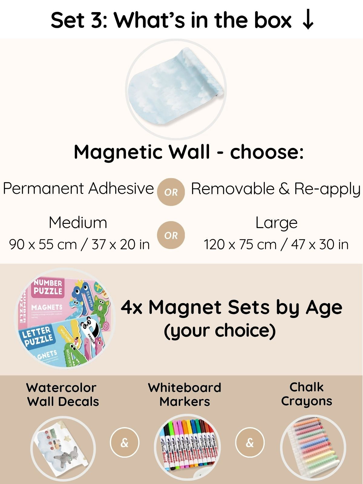 Complete Set: Wall Decals, Magnetic Wall & 4 Age-Based Magnet Sets