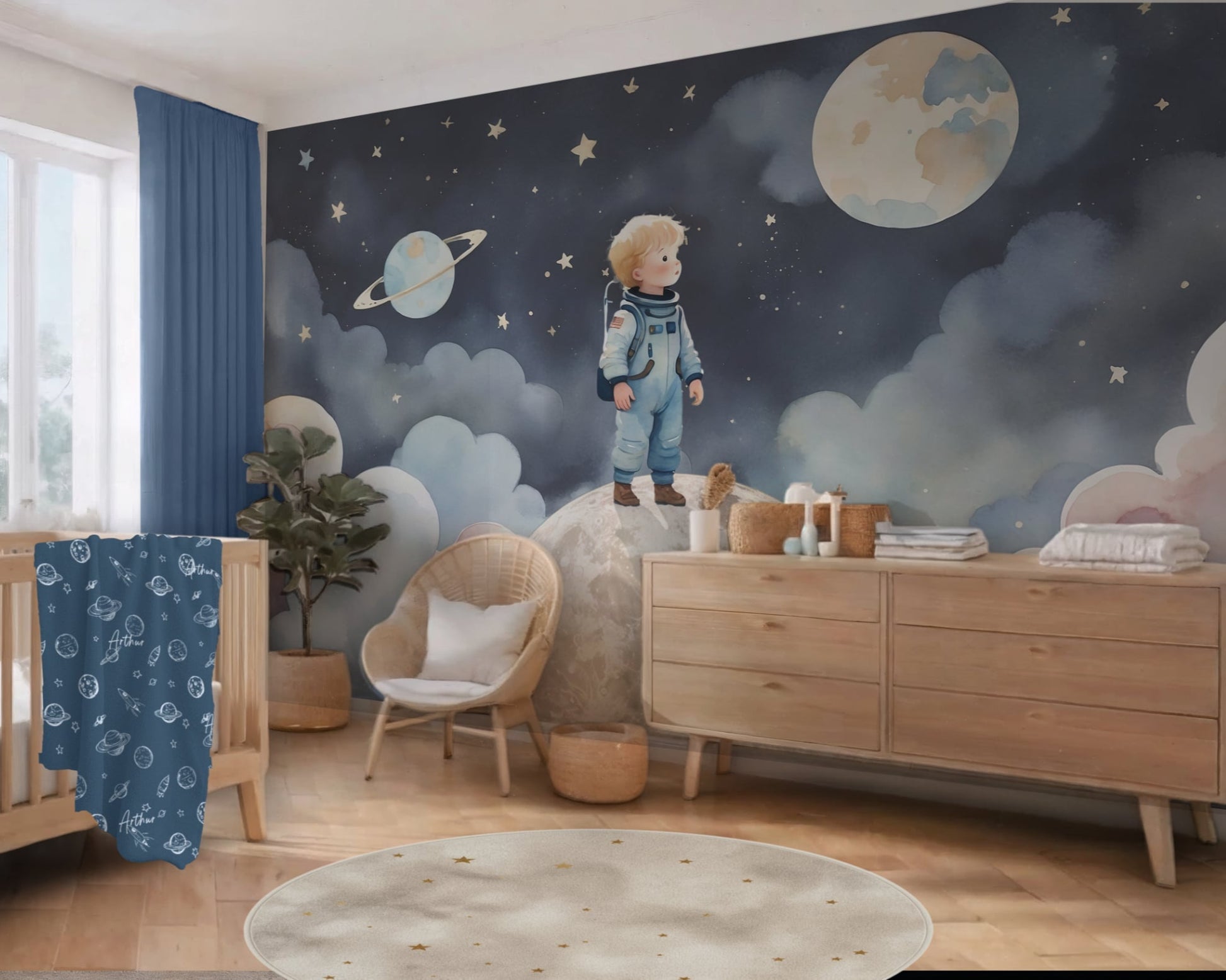 Space Astronaut Universe Nursery Wallpaper Peel & Stick