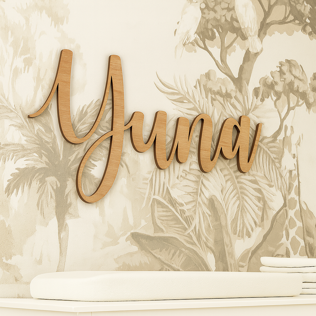 Just enter your little one’s name (e.g., Olivia) and choose your preferred wood color and size. Each sign is laser-cut with care and finished to highlight the natural grain and beauty of the wood.