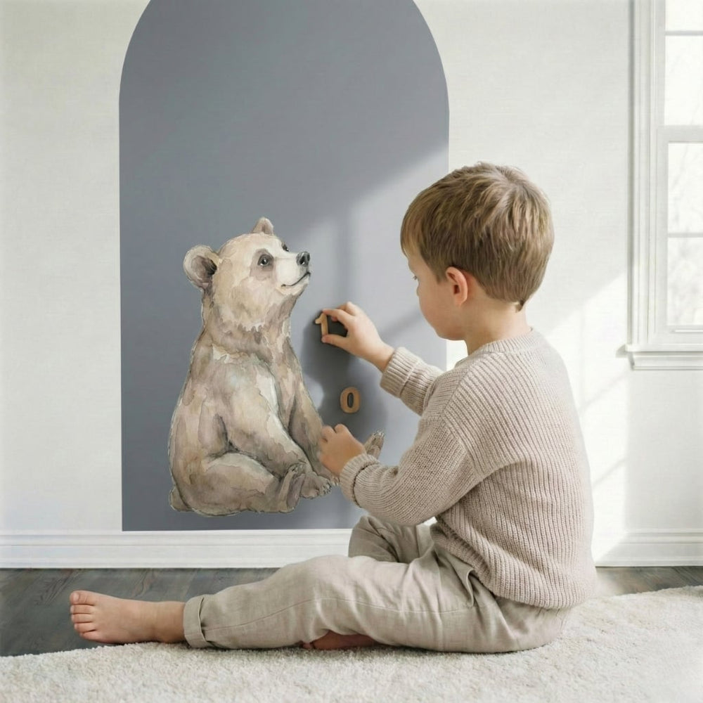 Easy installation of our removable watercolor bear wall sticker. Designed for parents, the decal applies smoothly, is repositionable, and leaves no damage—ideal for nurseries, rental homes, and modern family spaces.