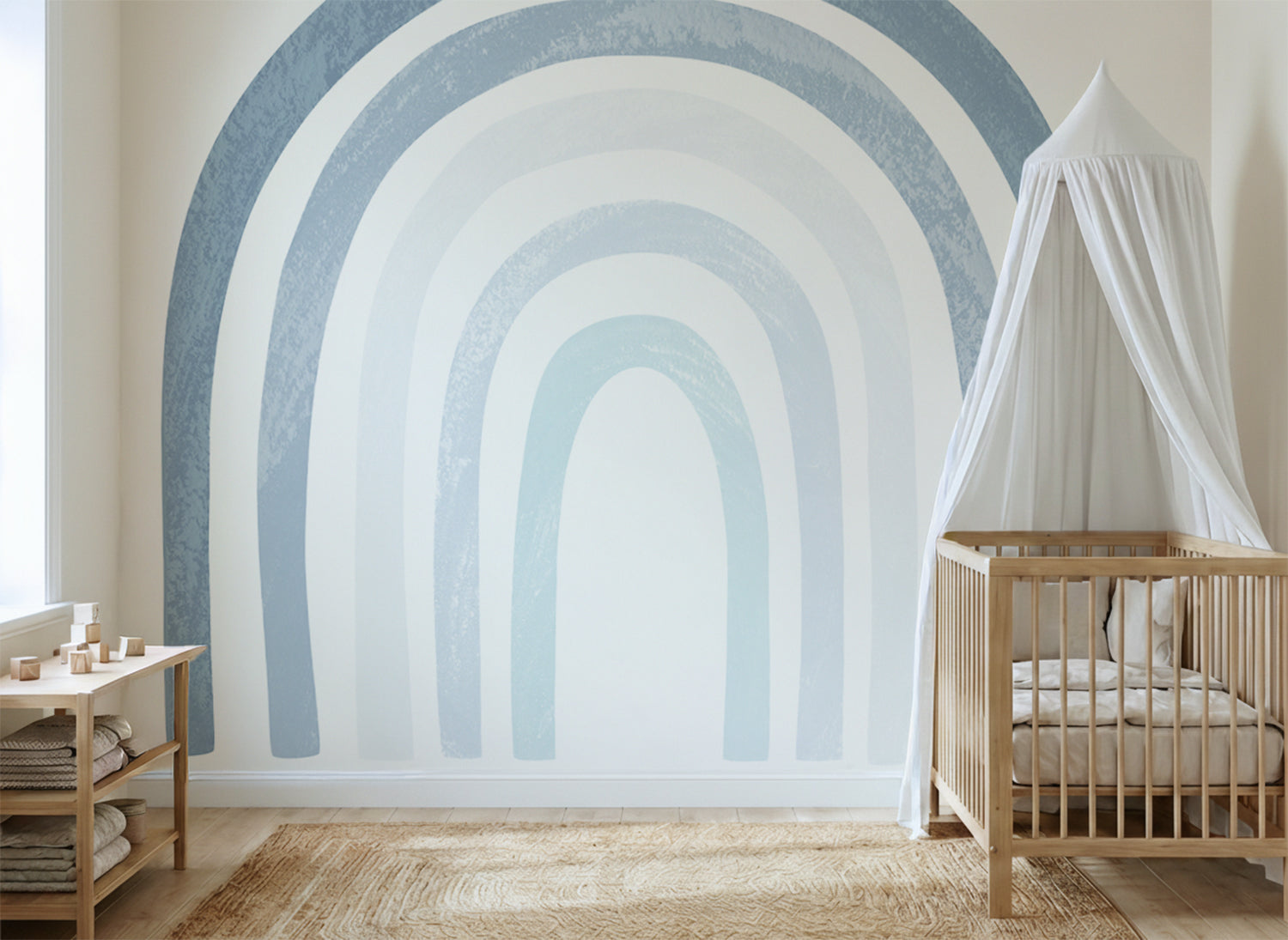 The large rainbow shape creates visual balance and a soothing focal point, making it ideal above beds, cribs, or reading corners. Its gentle blue palette blends beautifully with Scandinavian, modern, and neutral interiors.